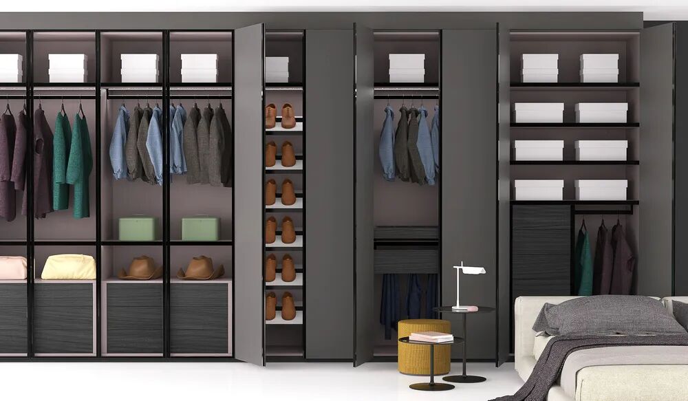 在浴室与卧室的走廊,触摸金色的把手,打开隐藏的衣帽间,一件件衬衣整齐的挂在衣帽间的栏杆上,开心自己贤惠的同时,帮爱人在轻奢风的衣帽间挑选出心仪的衣服,为他打好领带,一同品尝美味的早餐,开启美好的一天~